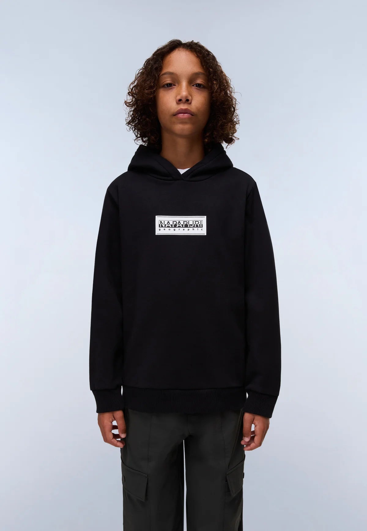 Made of soft and comfortable cotton, the Chamois hoodie for kids can be layered or worn alone. It features a fixed hood, long sleeves and Napapijri Geographic print on the chest.